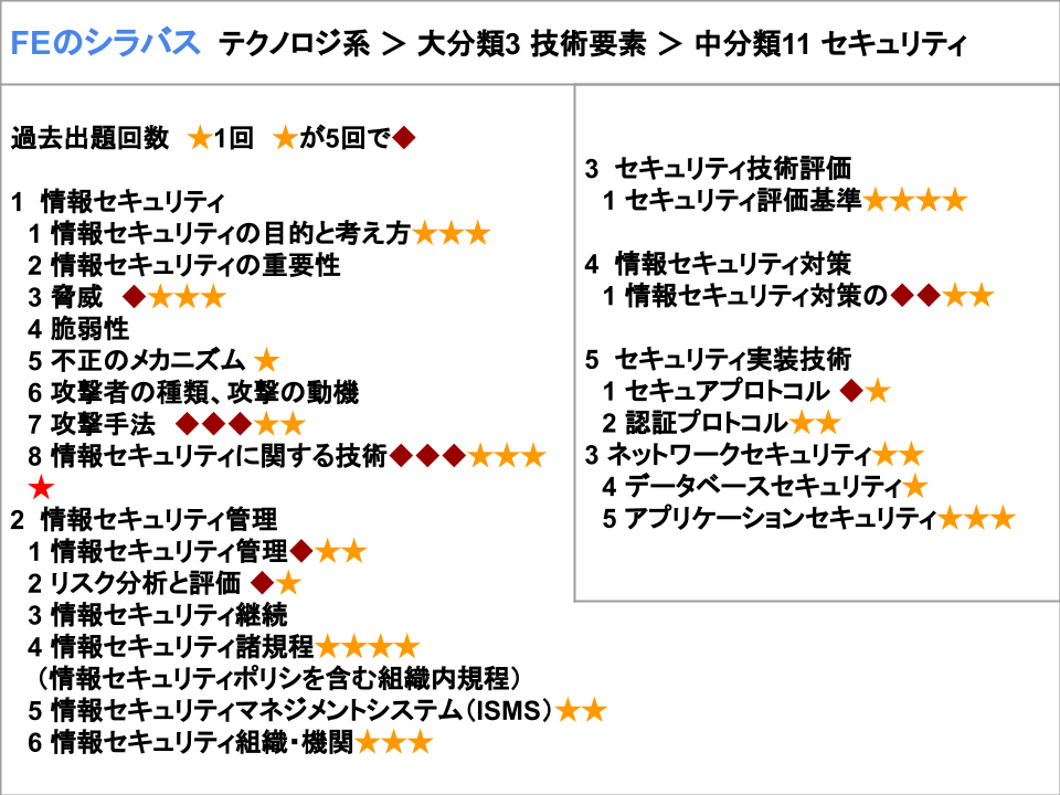 ▼今回の問いとFEのシラバスの関連を赤の★印、既出は橙色の★印で示しました。
