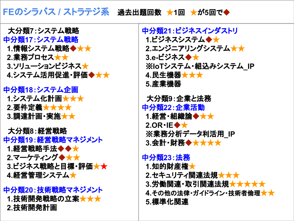 ▼今回の問いとFEのシラバスの関連を赤の★印、既出は橙色の★印で示しました。