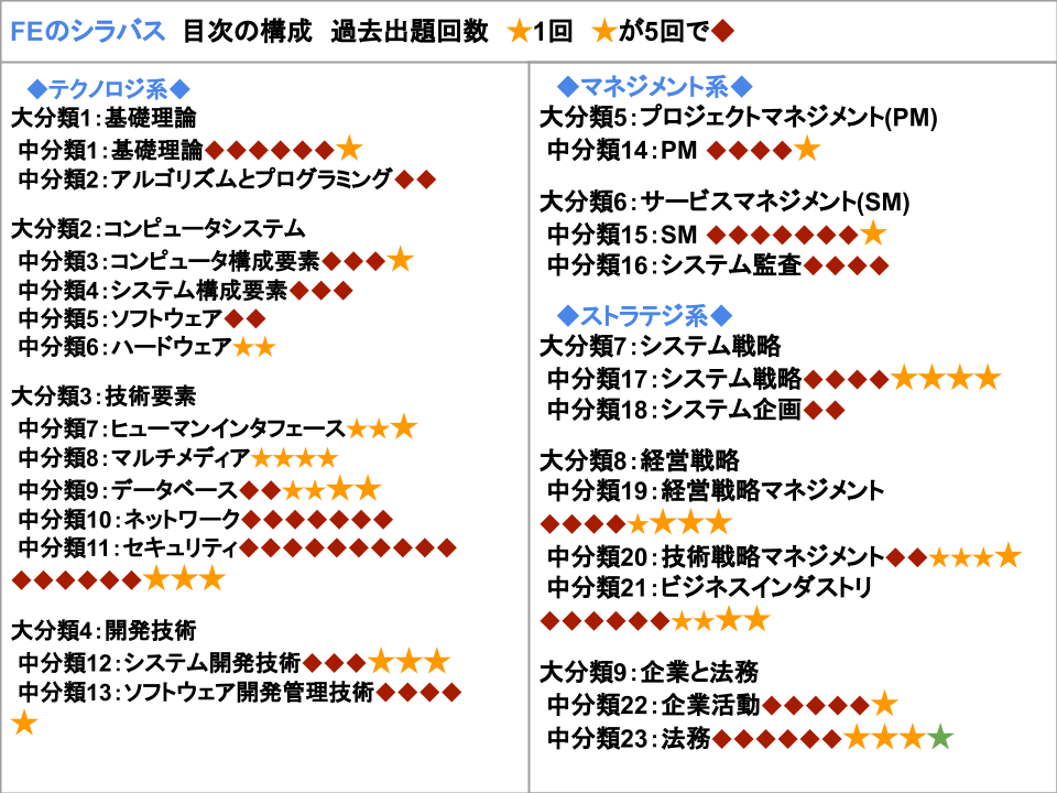 ▼今回の問いとFEのシラバスの関連を赤の★印、既出は橙色の★印で示しました。