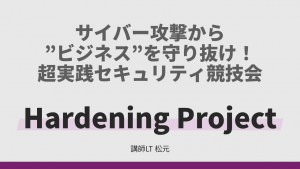今回のテーマは、サイバー攻撃の攻防を通じてECサイトの売上を競う、超実践的なセキュリティ競技会「Hardening Project」です。