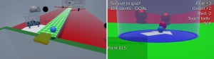制作にあたっては、ゲームの難易度設定の試行錯誤や、得点を取得した際の演出の工夫、アスレチックゲームとしてのギミック作成にも力を入れました。